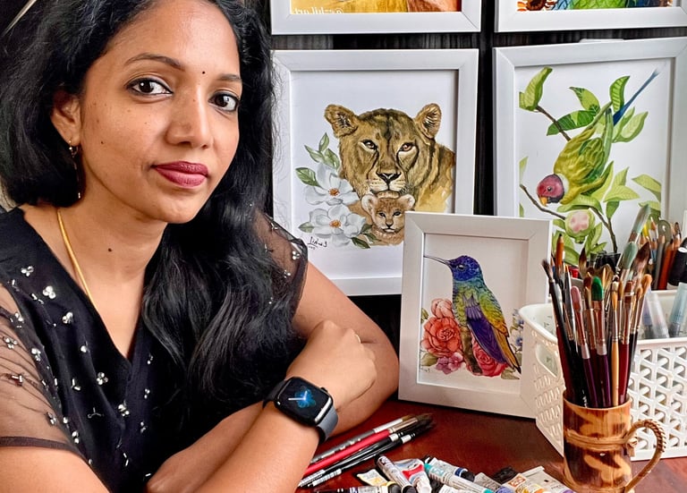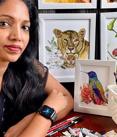 As a student, Ezhil's passion for wildlife art ignited my own love for nature and creativity.